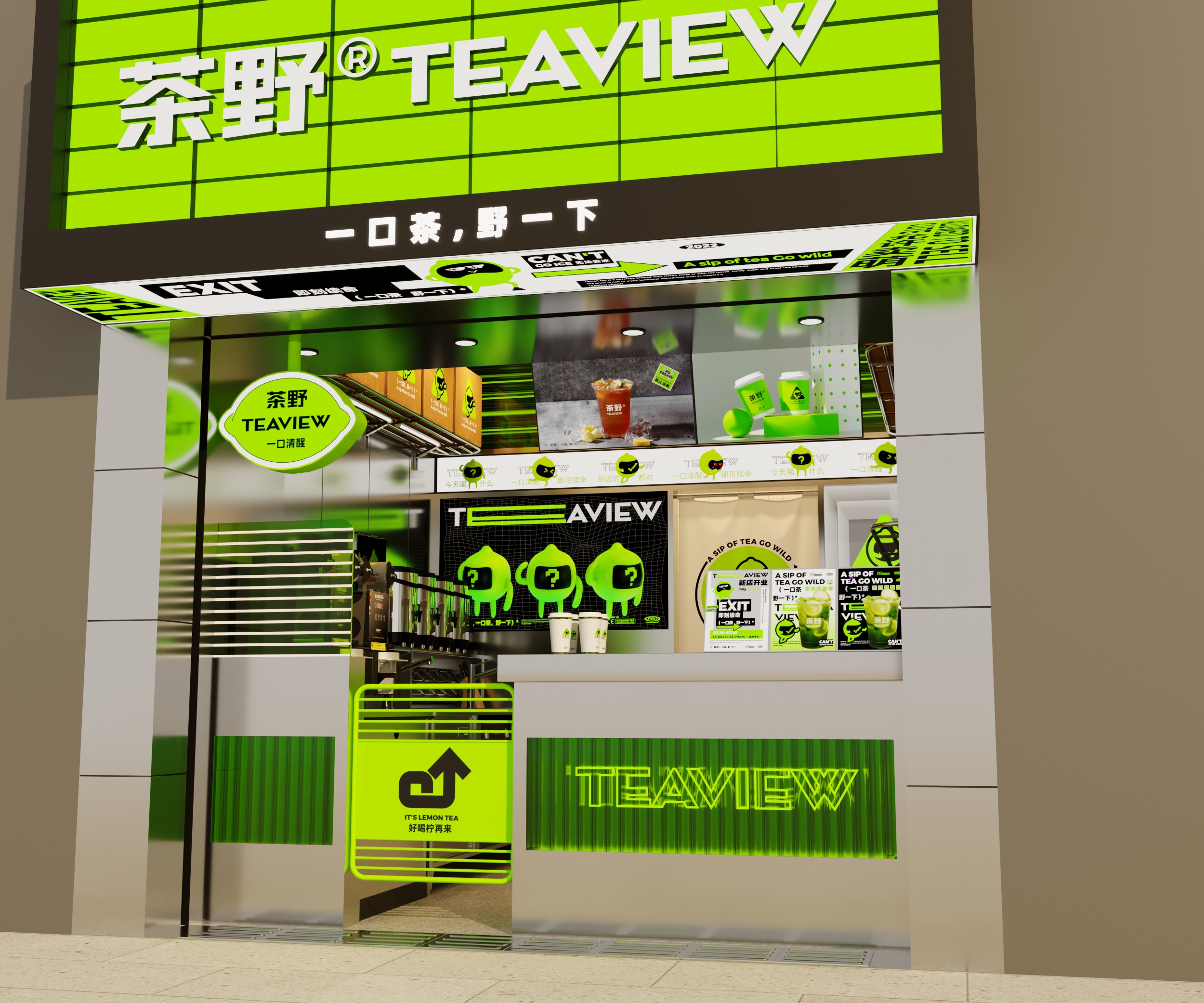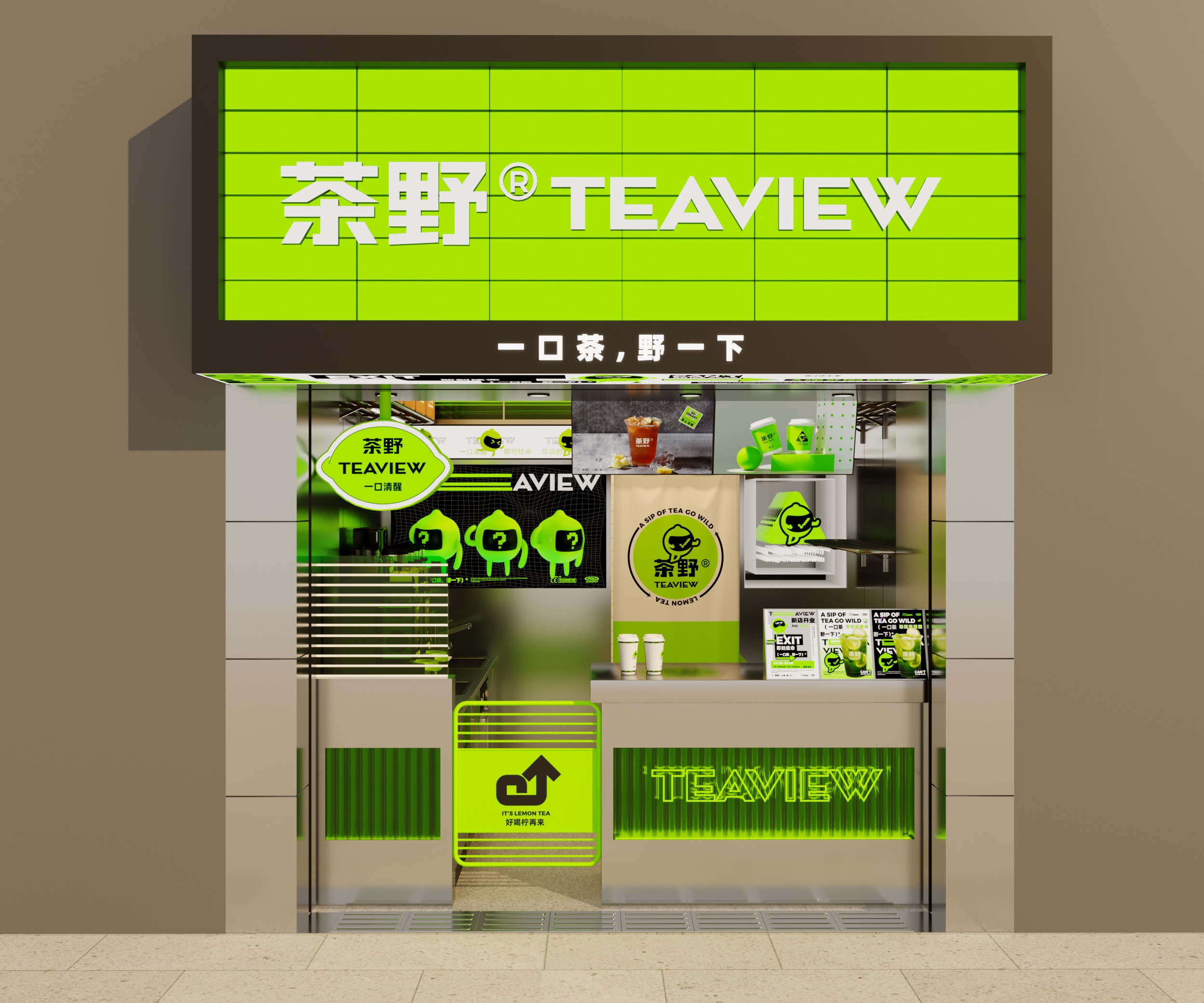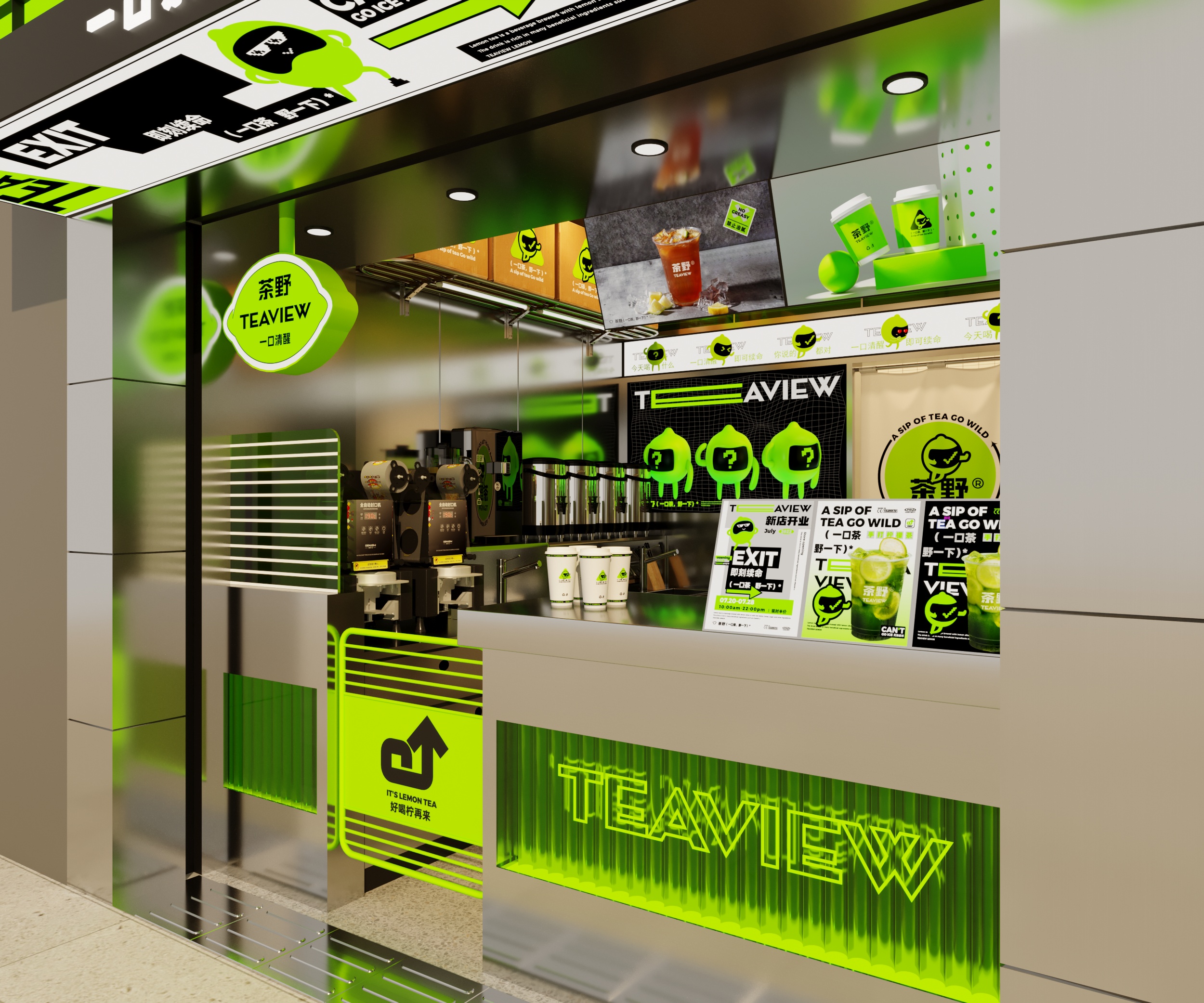 茶野以手打柠檬茶为核心,潮流符号+荧光绿配色,使品牌视觉更具冲击力,醒目而震撼,同时打造趣味性IP,营造出独特的文化个性和品牌氛围